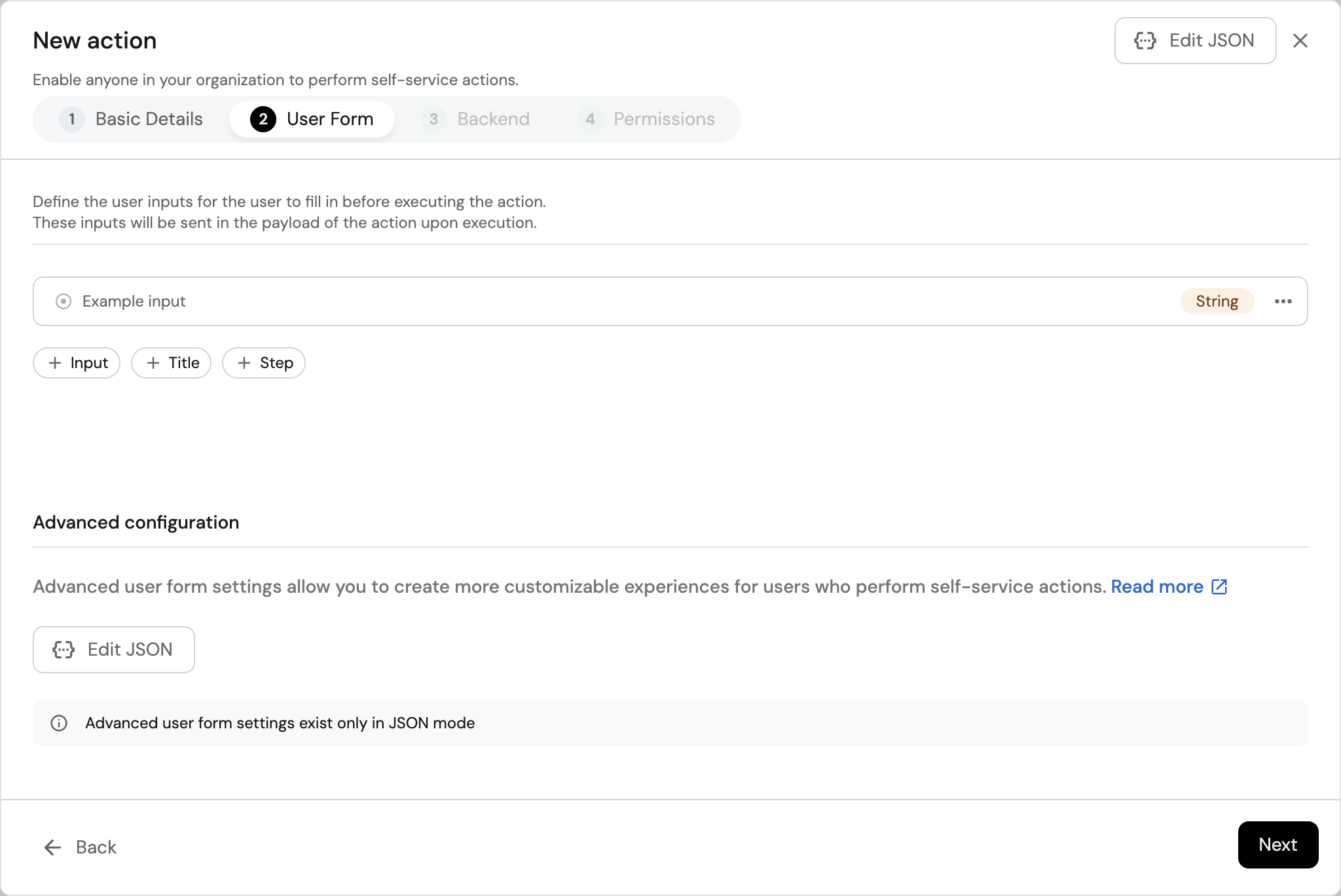 In cases where an action contains a large number of inputs, you may want to break the form into multiple steps. Users executing the action will see and fill each step at a time, which can help guide them through the process and make the action easier to understand.