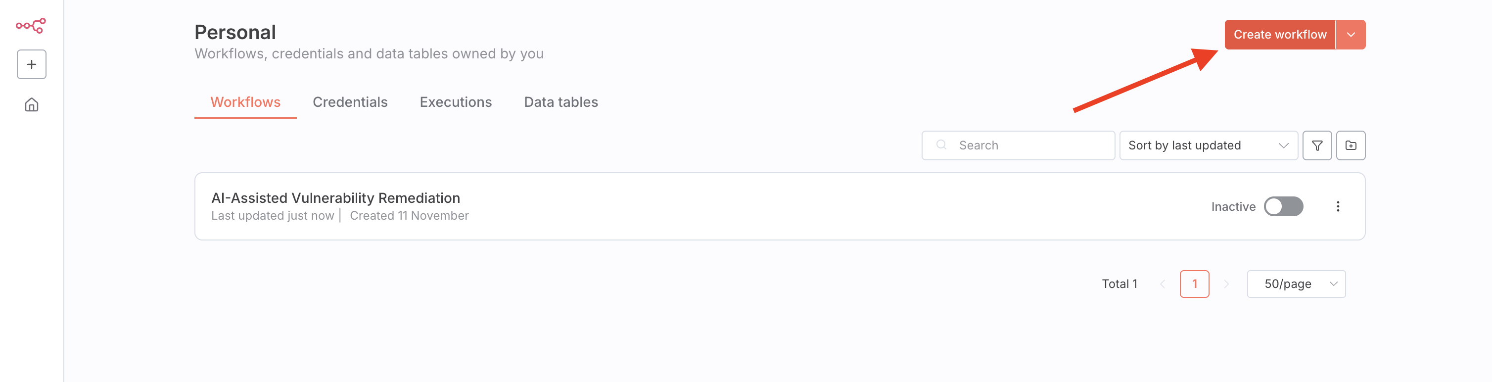 1. Create a new workflow in your n8n instance.
