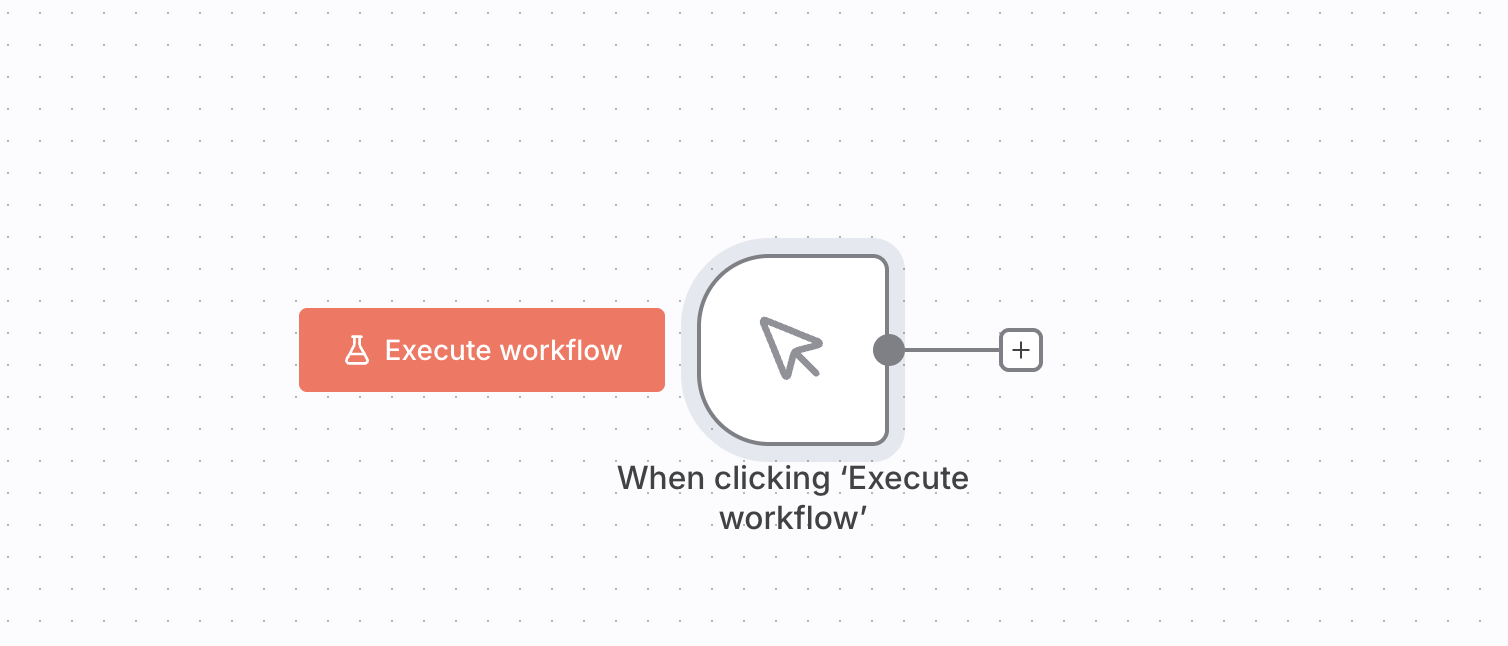 2. Add a trigger — For testing, add a Manual Trigger node so you can trigger the workflow manually by clicking the Execute Workflow button.