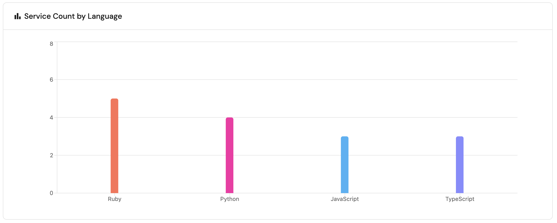 Bar charts illustrate data from entities in your software catalog divided by categories and entity properties, displayed as vertical bars.