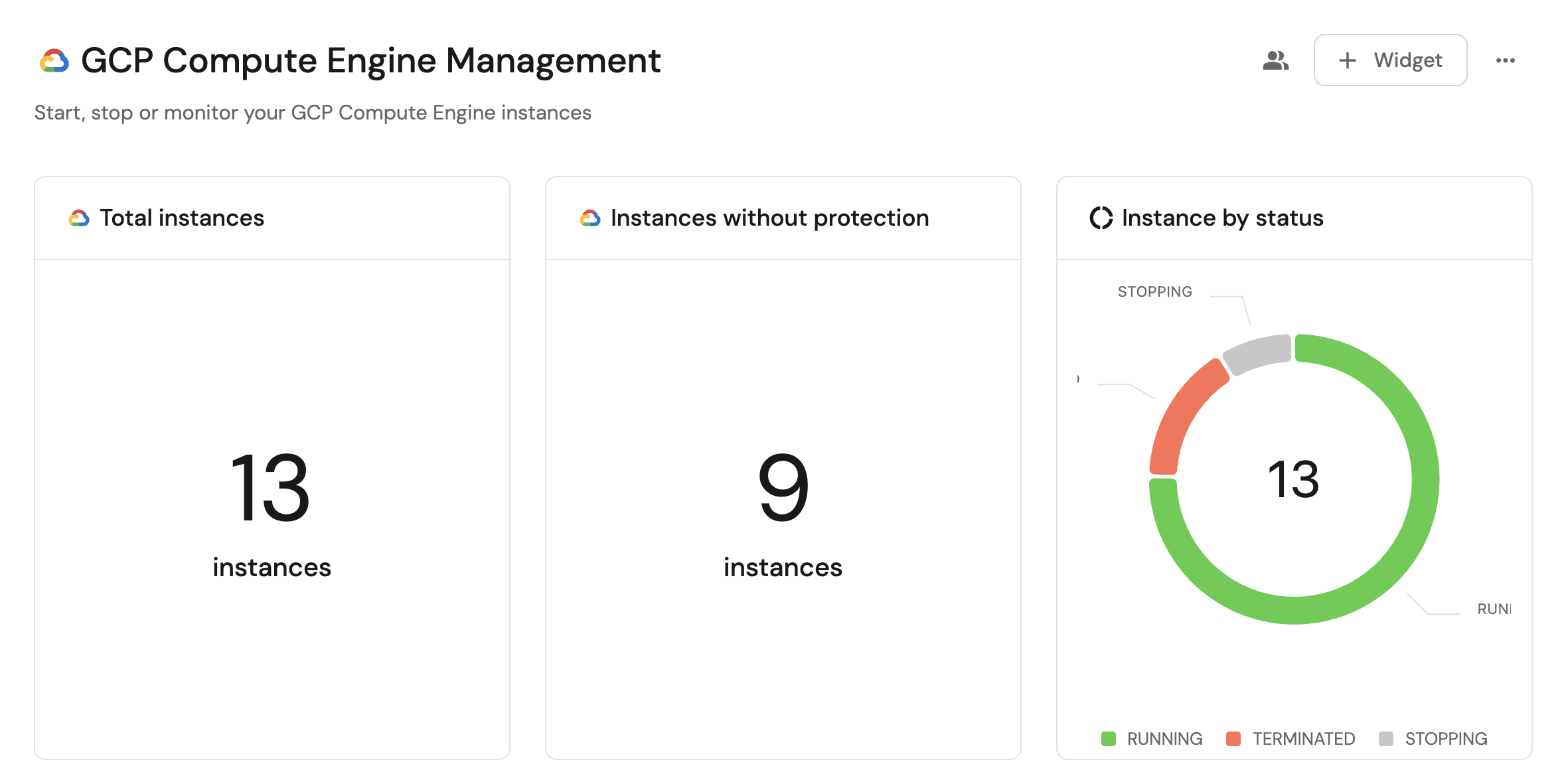 - Monitor the status and health of all Compute Engine instances across projects from a single dashboard.