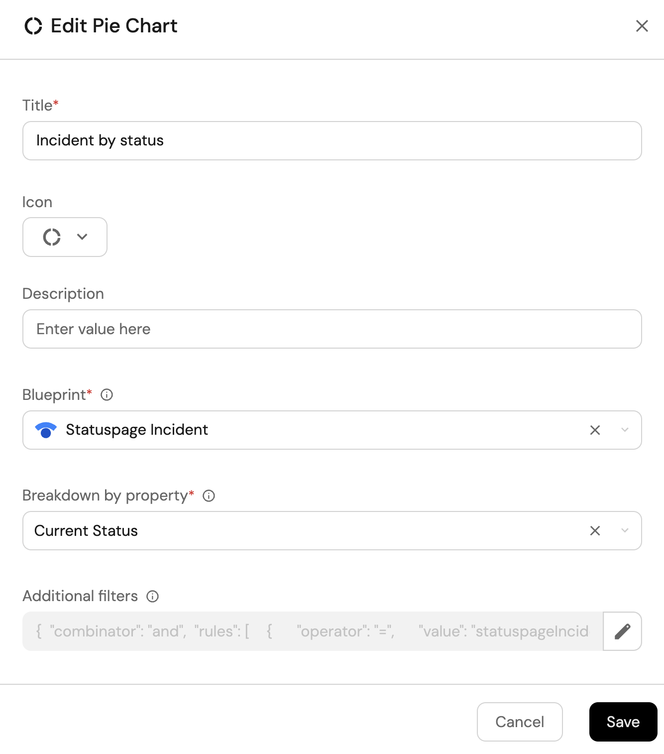 Count entitiesChart type and choose Statuspage Incident as the Blueprint. -