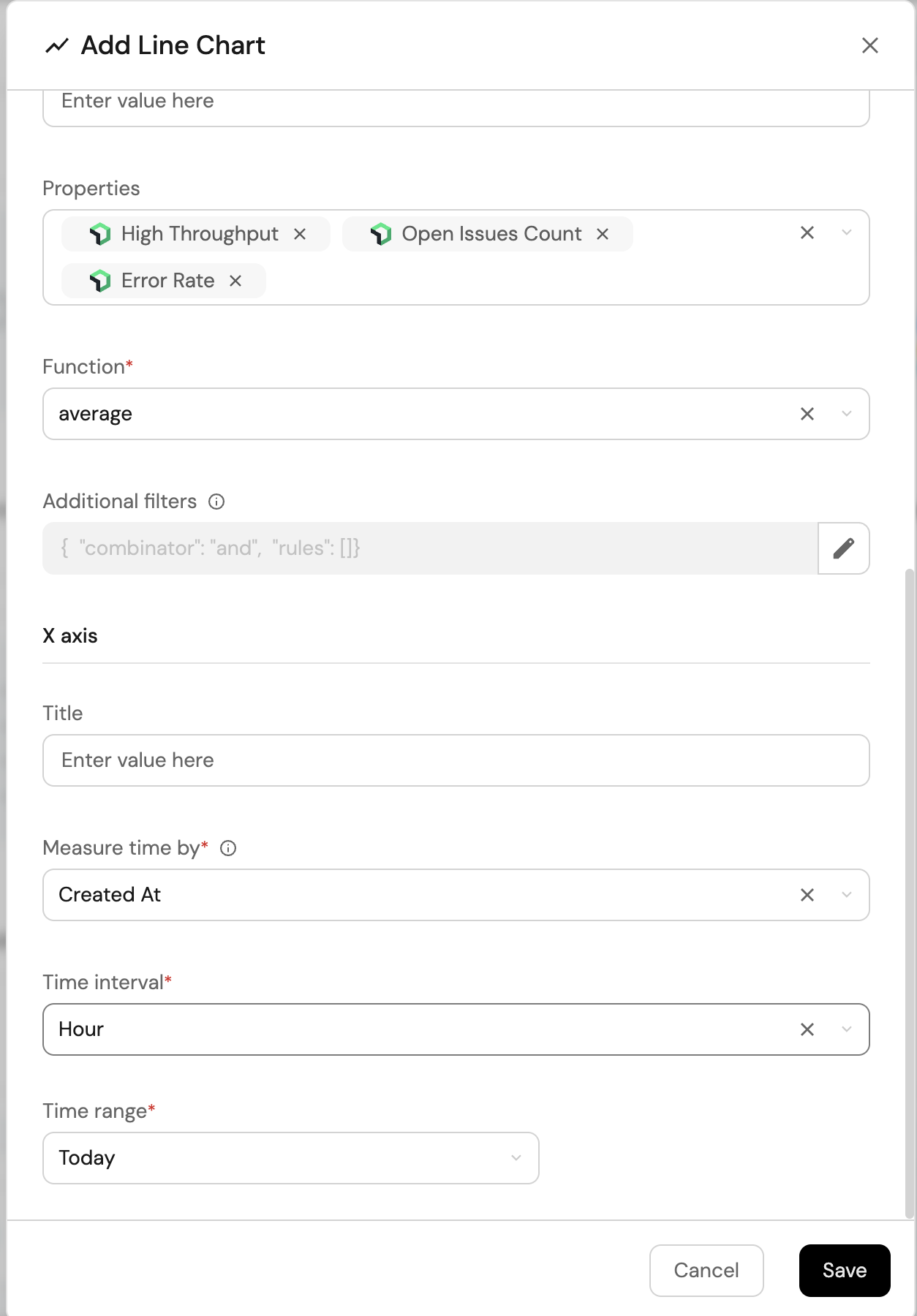 High Throughput,Open Issues Count,Error Rateas the Y axis Property. -
